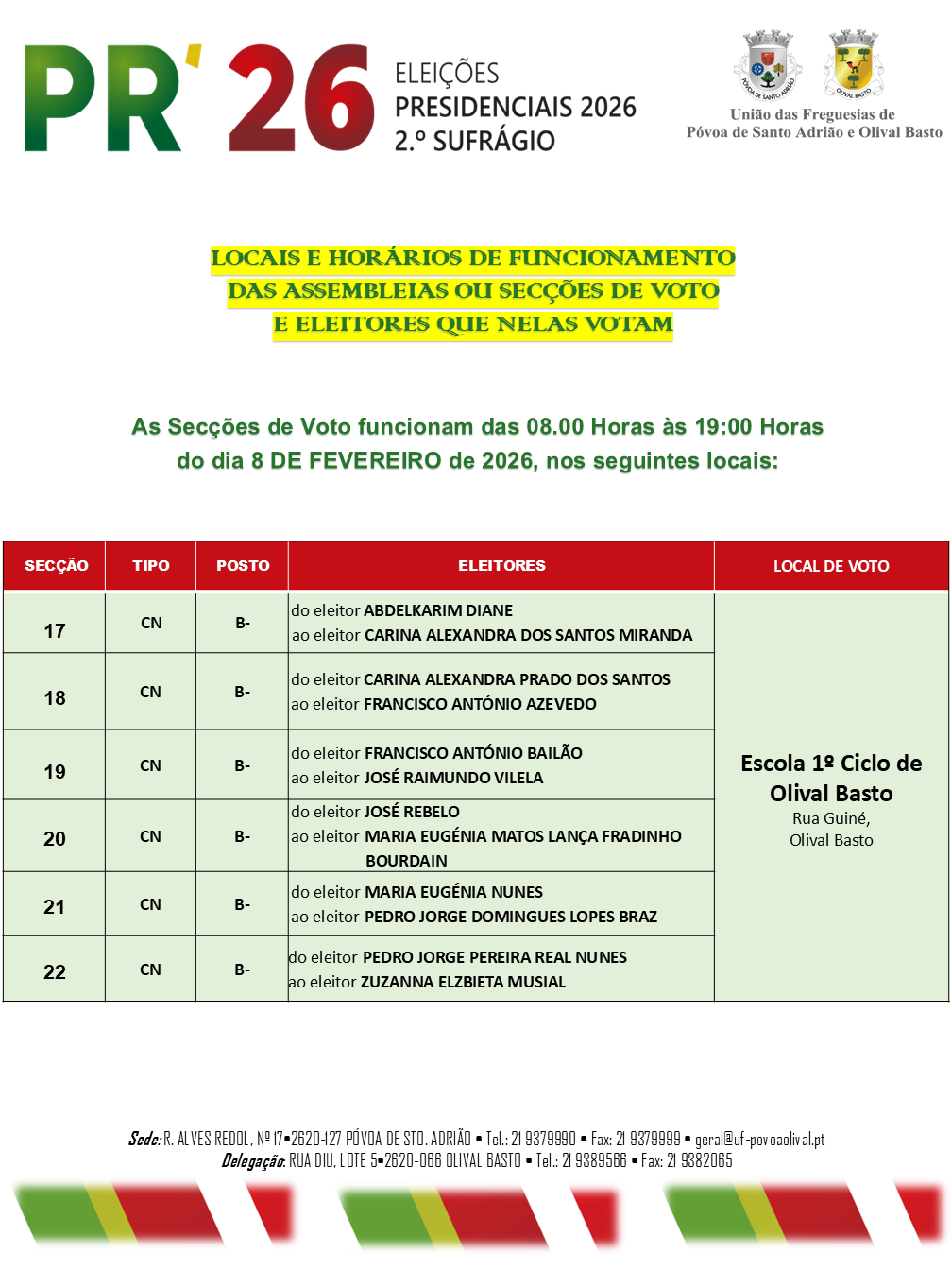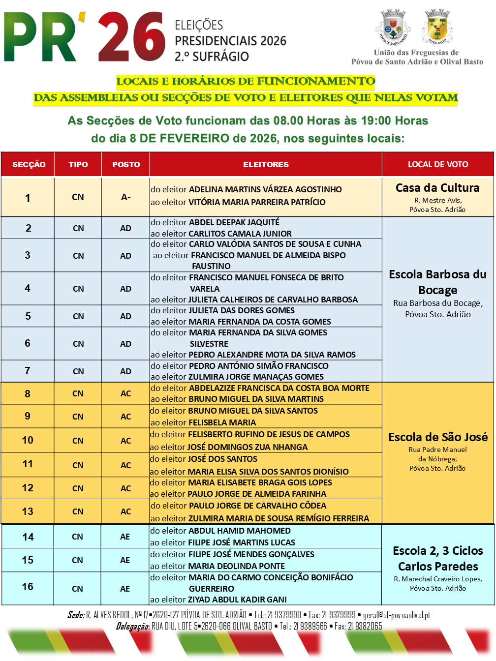 Presidenciais 2026 | 2º Sufrágio – Locais de Voto